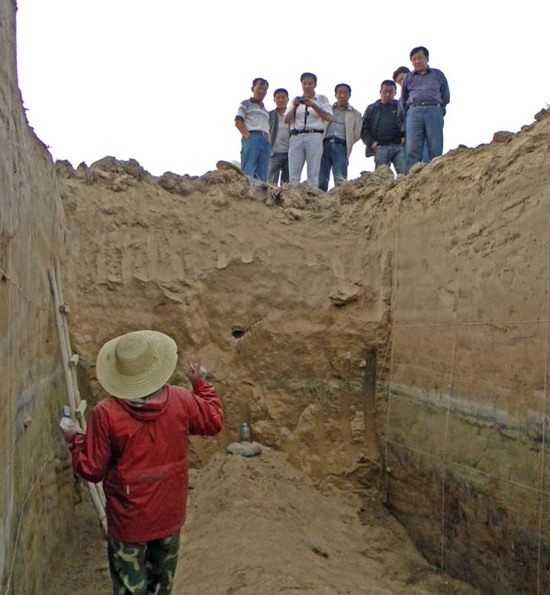 图5 向阿克塞县委领导人讲解断层和古地震证据