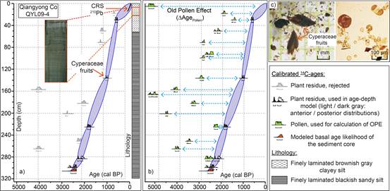图 2 岩芯年代深度模型及老孢粉效应计算