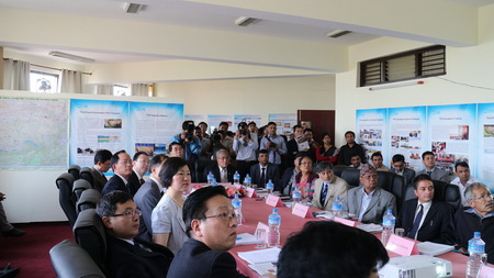在听取中心所取得的进展之后,双方开展了坦诚讨论和交流。TPE计划联合主席姚檀栋院士介绍了第三极环境加德满都中心的定位。白春礼院长表示,中科院青藏高原所和尼泊尔特里布文大学依靠中心开展了务实、卓有成效的合作,希望双方能继续推进双边合作。白春礼院长强调,可以以第三极环境加德满都中心为基础进一步将其建设成为中科院的海外中心,辐射南亚地区国家。希拉教授对中科院长期以来与特里布文大学的合作表示支持与感谢,并承诺将继续支持第三极环境加德满都中心的发展。