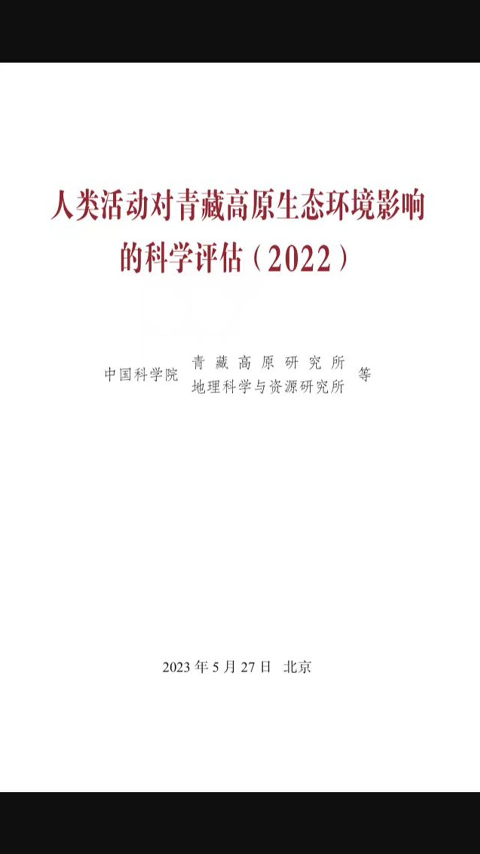 《人类活动对青藏高原生态环境影响的科学评估(2022)》报告封面