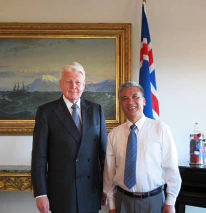 2011年7月16日,冰岛总统奥拉维尔·拉格纳·格里姆松(Olafur Ragnar Grimsson)在总统官邸会见了来访的中科院副院长丁仲礼院士一行。参加此次会见的中方代表还有资环局局长范蔚茗、青藏高原所所长姚檀栋院士等,参加会见的冰方代表还有冰岛总统办公室主任、科技顾问和来自冰岛大学等有关科研部门的部分专家等。大家重点围绕TPE国际计划和相关科学问题展开了讨论。